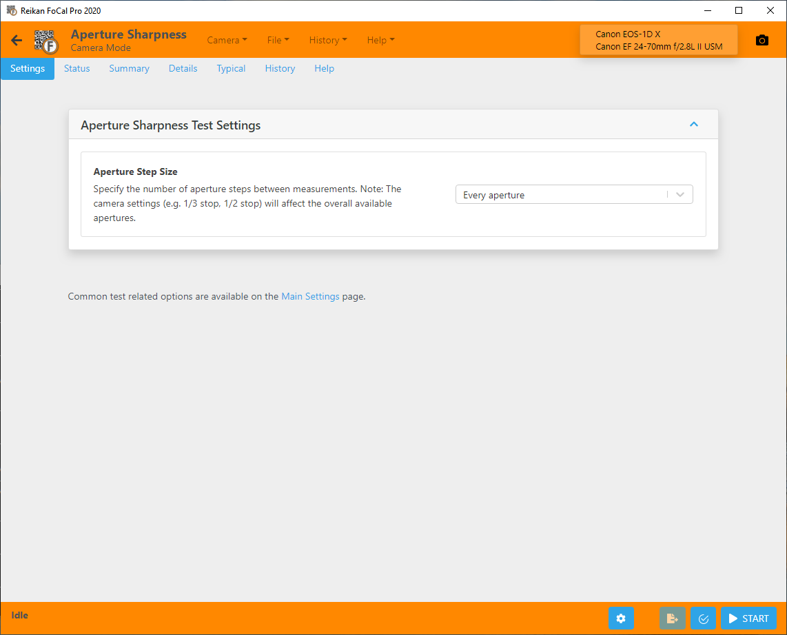 By default, the test will measure the quality at every aperture available (note that this may be affected by settings on the camera – e.g. exposure increment being set to 1/3, ½ or 1 stop).